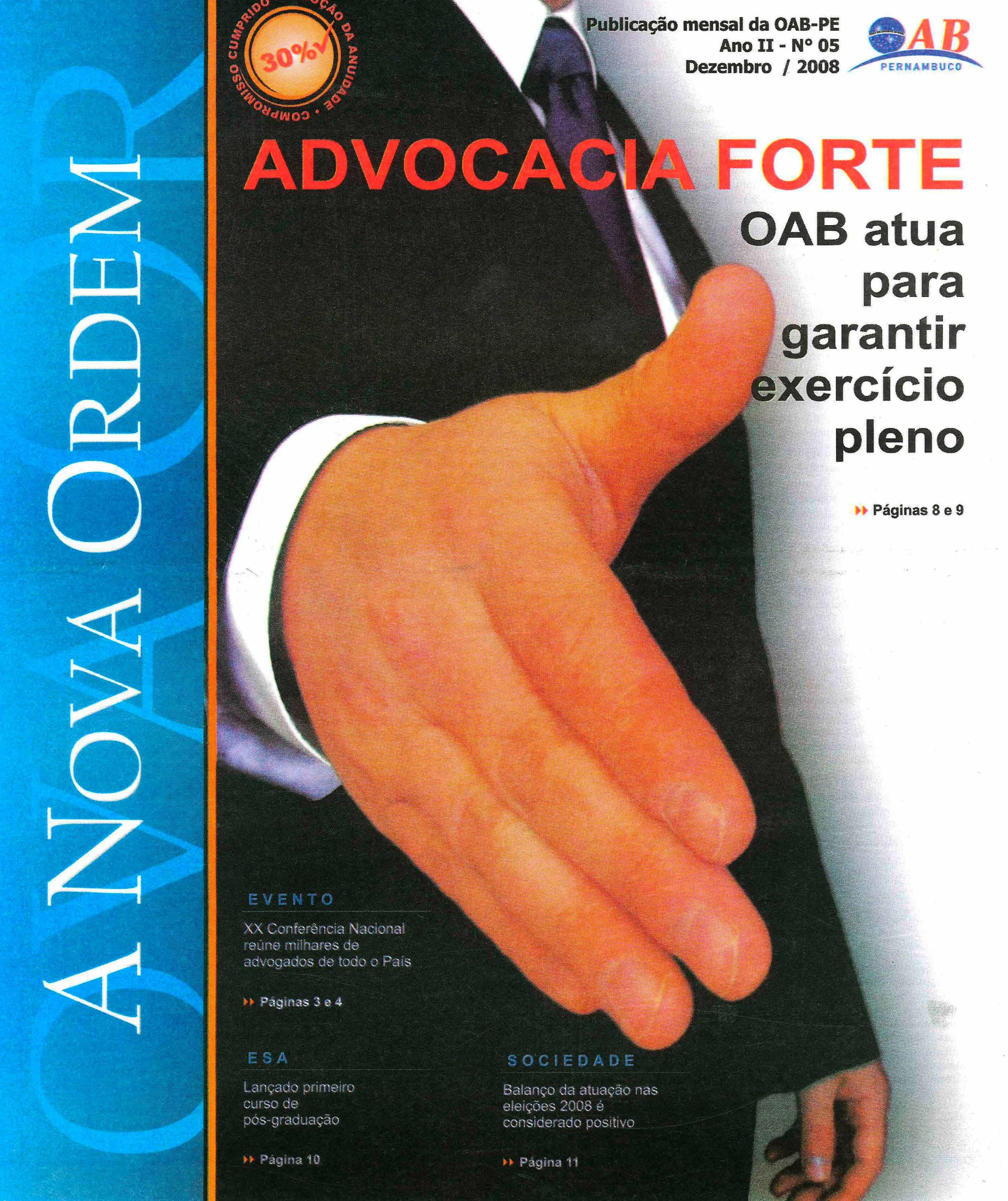 Nesse sentido, é valioso o trabalho atento da atual Diretoria da OAB-PE, presidida por Fernando J. Ribeiro Lins, que, com sua postura altiva, tem honrado a história da Ordem. Merecem destaque a Vice-Presidente Ingrid Zanella, a