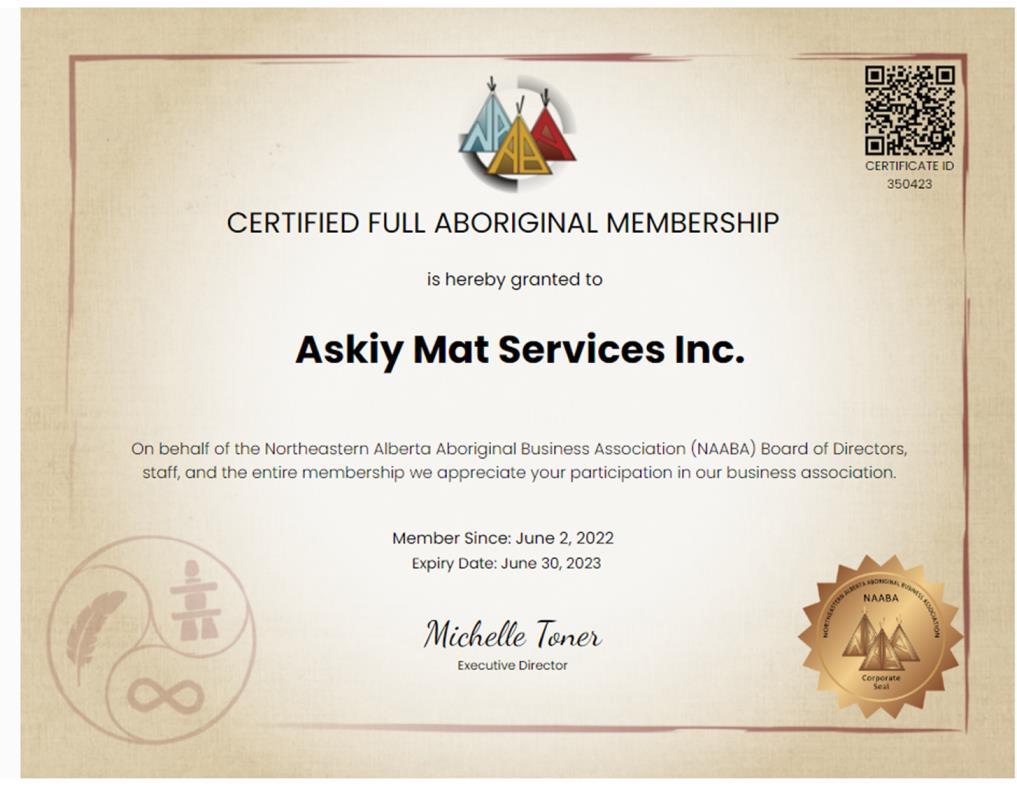 Askiy Mat Service is more than a business; it is a reflection of our culture, heritage, and commitment to the principles of respect and sustainability taught by our ancestors. Owned and operated by a member of the Mikisew Cree First Nation, our company is a testament to the strength and resilience of our community. We bring these values to the forefront of our operations, ensuring that every interaction honors our heritage and contributes to the wellbeing of our planet.