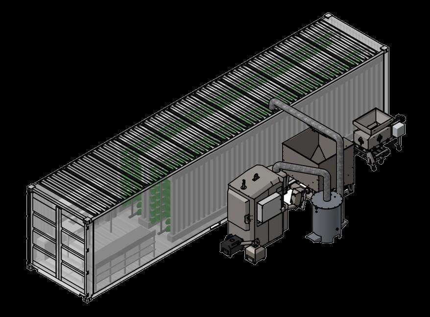 • Localized Processing: The micro-sized rapid dehydration systems allow food waste to be processed within the community. Residents are encouraged to bring their food waste to the local processor, which converts it into clean-burning wood-like pellets.