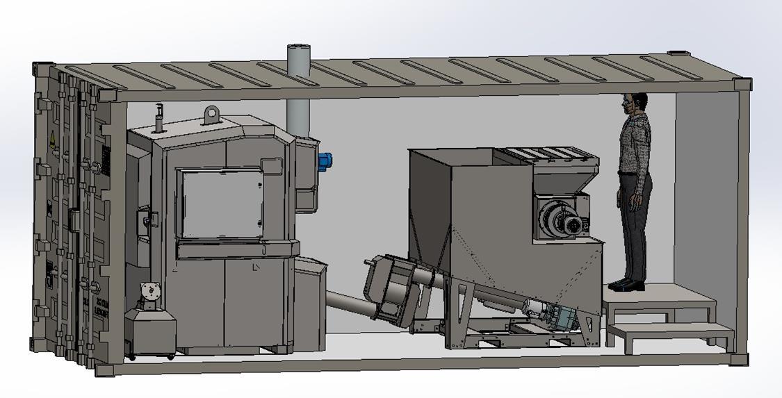 4. Processing and Rejection: Verified loads are dumped into the rapid dehydrator for processing. Loads that do not meet the criteria are rejected and automatically dumped into a bin located behind the 40-foot sea container. This automated sorting ensures that only appropriate waste is processed, maintaining the integrity of the system.