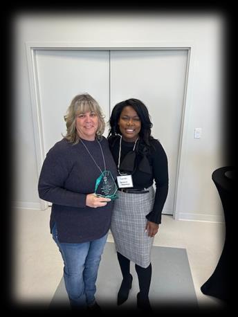 Pictured is Val Favel receiving recognition from Spectrum Advantage for successful participation in the Autism Placement Program .