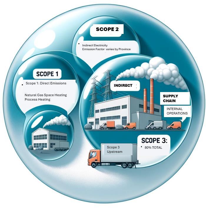 2. Innovating Scope 3 Challenges: Addressing the complexities of Scope 3 emissions, which constitute the largest portion of our carbon footprint, we have streamlined this category by focusing on "Internal Operations." This approach simplifies accounting and emphasizes that Scope 3 emissions can represent up to 80% of total emissions.