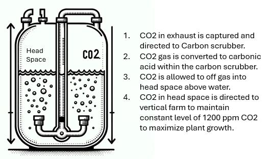 A groundbreaking technology has been developed to scrub CO2 from the exhaust stack by converting it into carbonic acid in a sealed tank half filled with water. This process involves directing the CO2-laden exhaust into the tank, where it dissolves in water to form carbonic