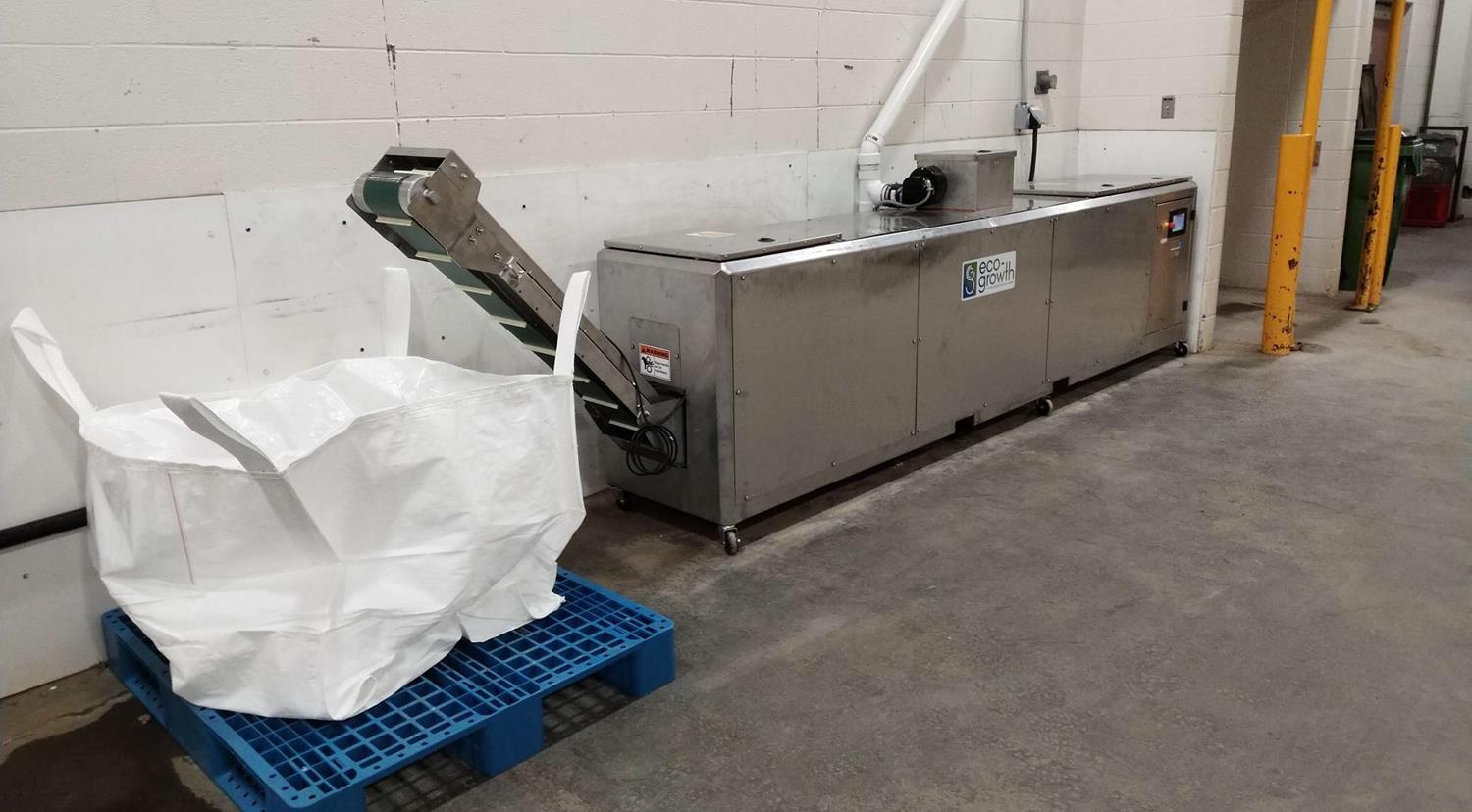 Fact: food waste is on average 80% water. Solution: rapidly dehydrate on-site