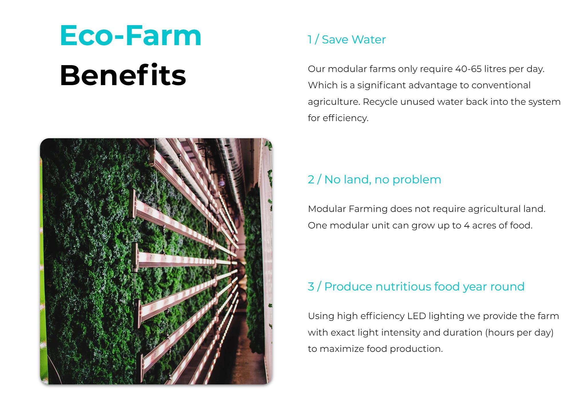 • Exhaust stream from 210,000 btu’s per day will provide enough CO2 to reach 1,200 ppm CO2 in the modular farm.