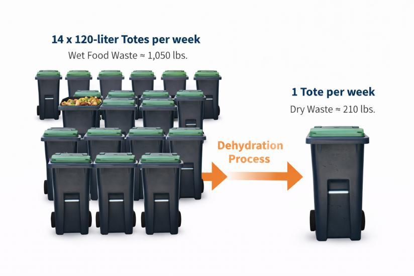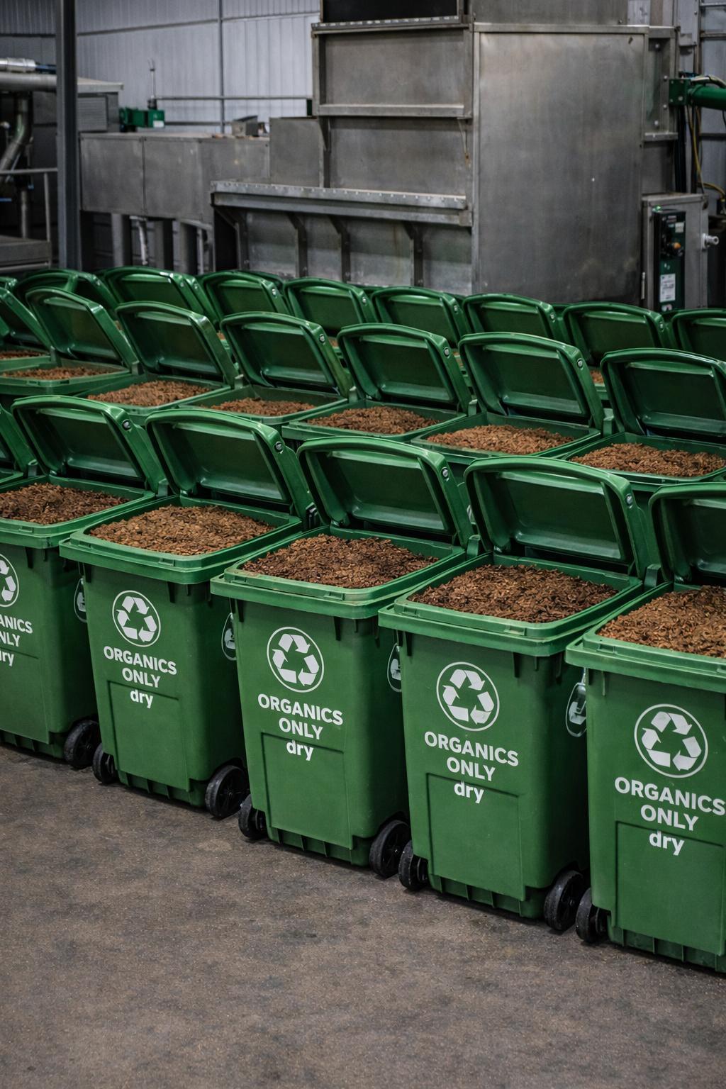 CollectedtotesaretransportedtotheExecutiveMatServicefacility,wherethedried organicmaterialisconsolidatedandupcycledintobiomassfeedstock.This centralizedupcyclingmodelconvertswhatwaspreviouslylandfill-boundwasteinto arecoverableenergyresource,supportingacircularoperationalframework.