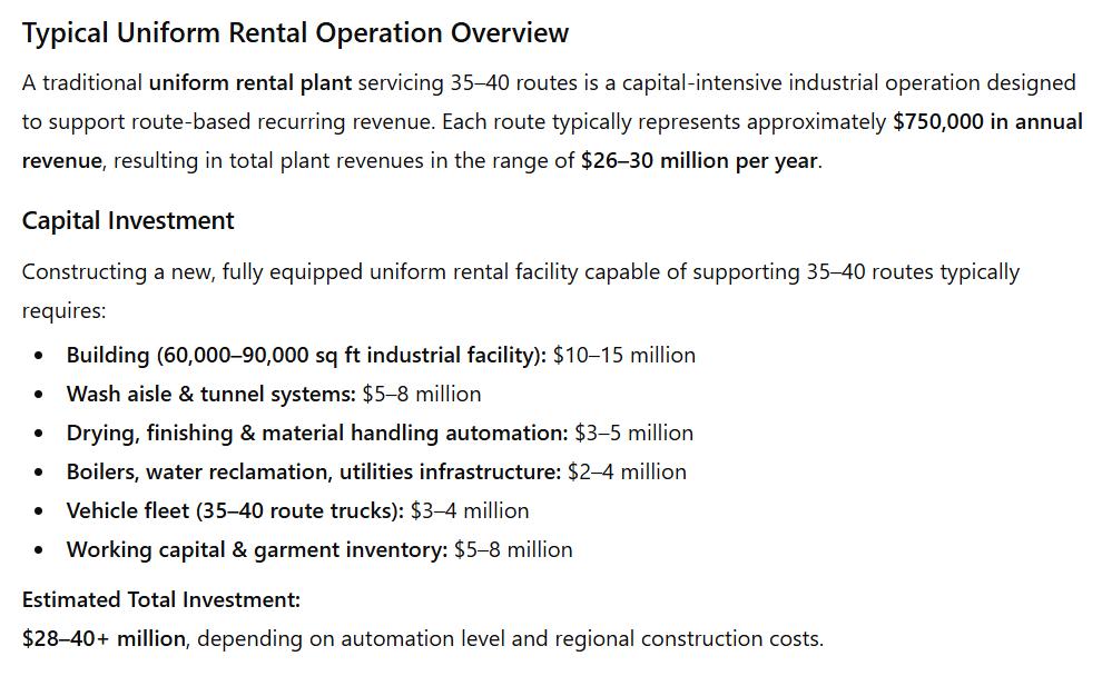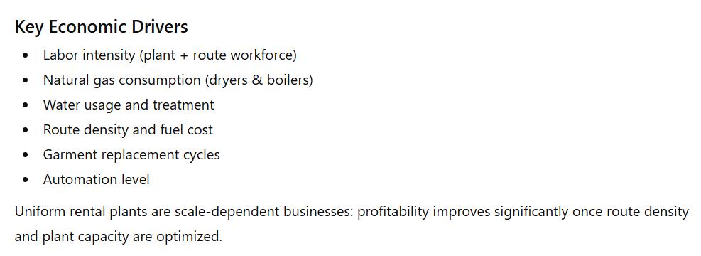 •UniformRentalPrograms(garments,PPE,hospitality,healthcare):65%–80%oftotal revenue.