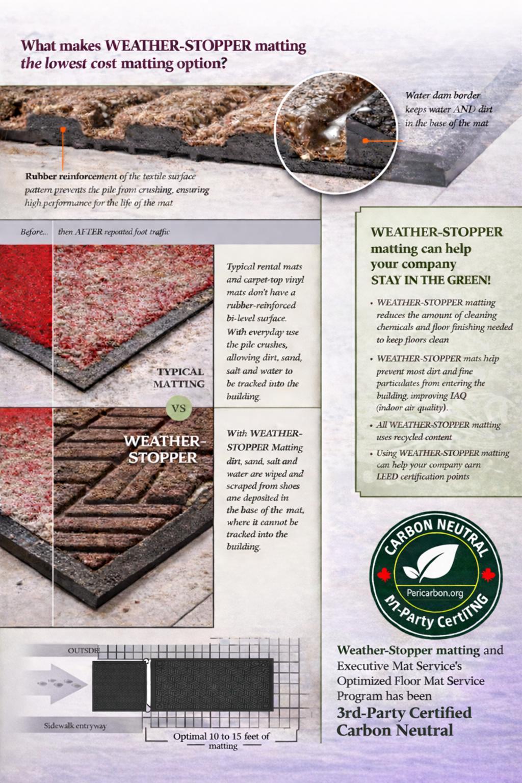 • ReducedMaintenanceCosts:Containingsoilattheentrancedecreasesthefrequency andintensityofvacuuming,mopping,andrefinishingcycles.