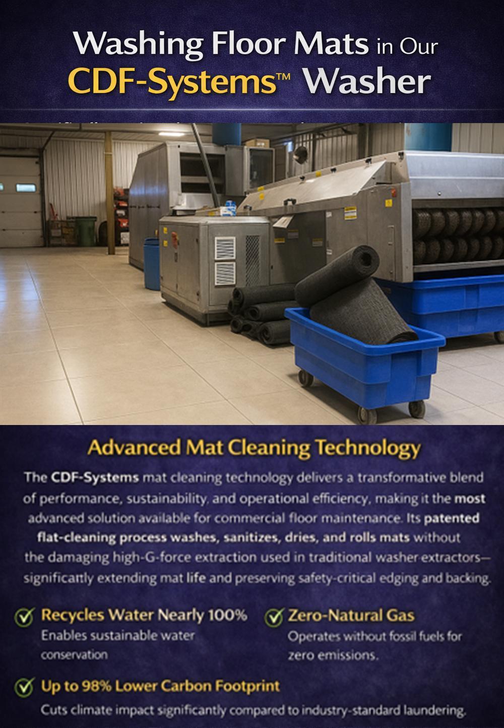 • Textilerentalorganizationsfoundamarketopportunityand beganlaunderingmatsalongsideuniformsusingconventional washer-extractorsandgasdryersasaservice.