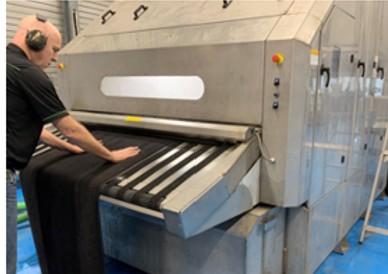 Based on a study published by TRSA the average carbon footprint for industrial laundries (reporting on average 40% dust control volume) is 1.78 kg CO2e per m2 processed (based on weight 4.8 kg. m2).