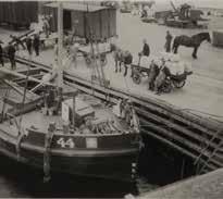 Smörexporten den 7 maj 1931, Dansk pråm lastar smör vid Ångbåtsbron i Nyhamnen.