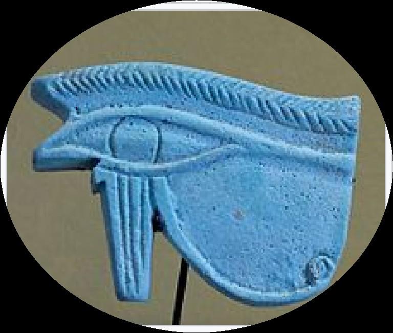 Amuleto: colgante con el Ojo de Horus (Louvre). A menudo están asociados con los otros remedios; eran conjuros que un dios había pronunciado en condiciones análogas, y se recitaban para asegurar la eficacia del remedio. A cada enfermedad le correspondía una fórmula precisa para decir.
