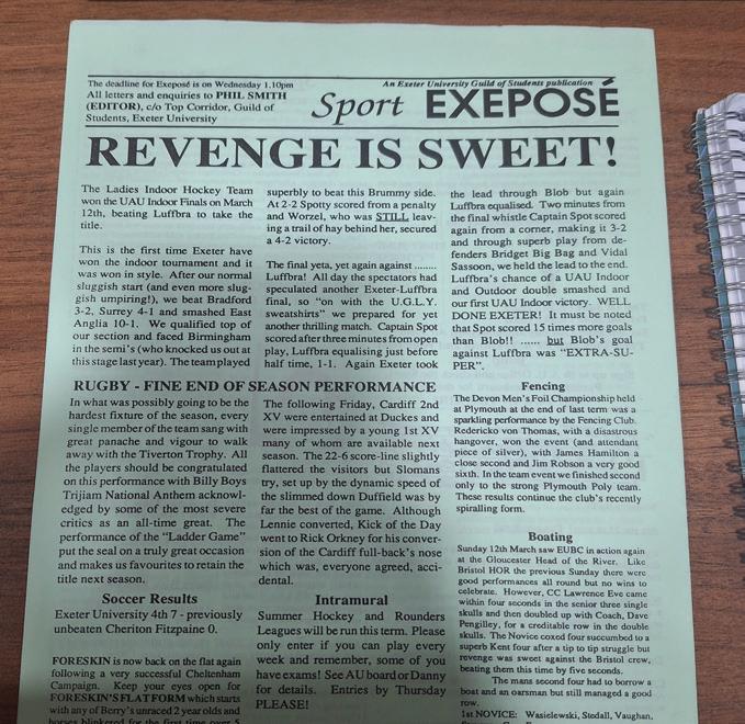 rowers via Menin, Rogers and Moloney. A day before Mother’s Day and a day after International Women’s Day — the double header was a breath of fresh air in the Exeter sports calendar, and a great step for the premier women’s sport club in the university after unfairly having their trip to Sandy Park taken away from them last year. Two wins