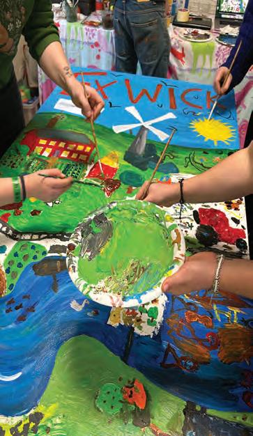 gaging the local community in creating an eco-focused vision for the future of Exwick. Visitors of all ages participated in various activities, from creating urban greening collages to planting seeds in newspaper plant pots, and even helping to paint a giant mural for what a sustainable and green Exwick could one day look like. It was great to see how many people showed up — proving just how important it is to create spaces for these conversations and let everyone put forward their ideas.