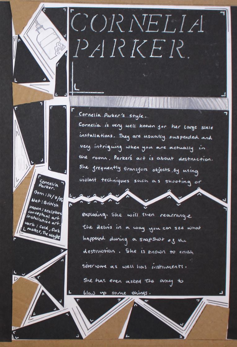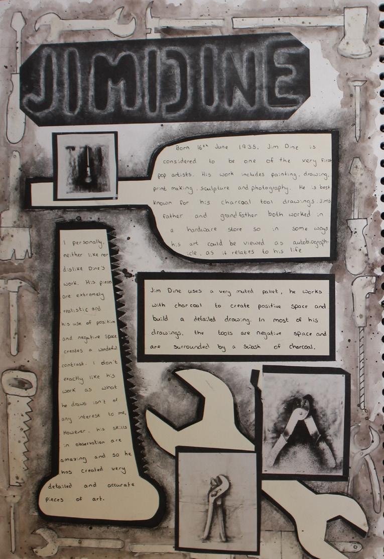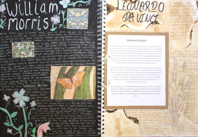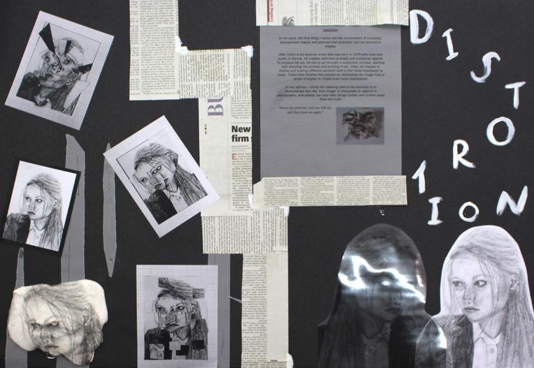 The work displayed here is the product of their initial investigations into their Personal Investigation unit. Each student is beginning their own journey which will continue to develop into the first half of U6th form.