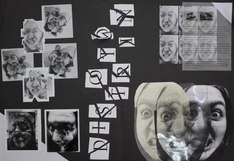 Working under the theme of portraiture, pupils have produced a variety of different outcomes; from vibrant mixed media monoprints to nonsensical
