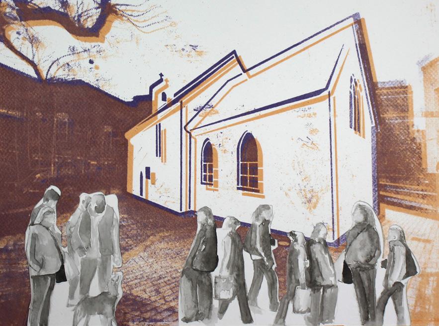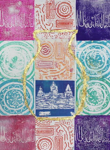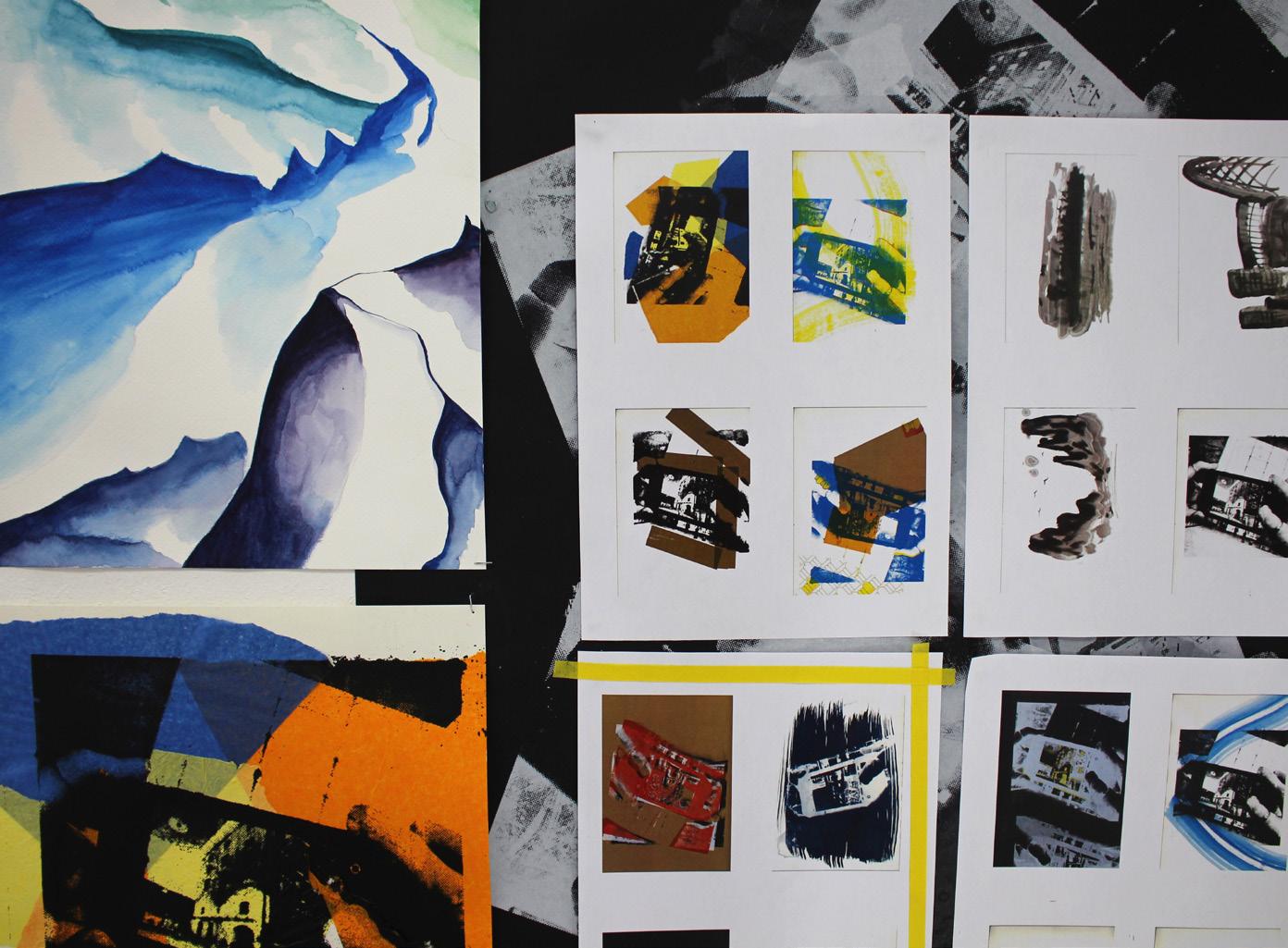 their own travelled journey and maps of their local area. This work was later developed into gelli prints and digitally manipulated using a variety of apps and digital programmes such as sketchbook and adobe capture.