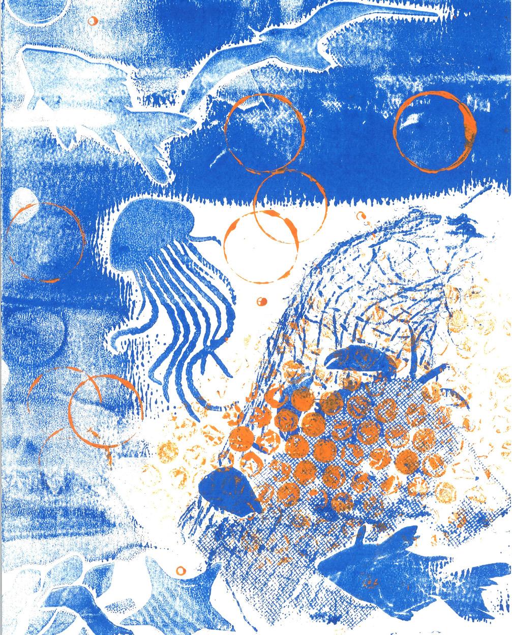 Year two pupils from The New School joined us for a printmaking masterclass, they produced textured collagraph plates, using found materials such as bubble wrap, packaging, and straws. The pupils were inspired by our British sea shores, with a focus on the environment.