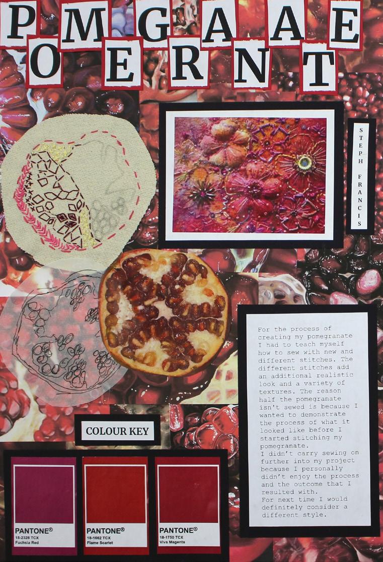 The work displayed here is the culmination of the GCSE coursework and examination units. The personal outcomes are the results of detailed investigation and experimentation from their chosen lines of enquiry.