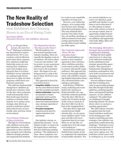 The New Reality of Tradeshow Selection How Exhibitors Are Choosing Shows in an Era of Rising Costs by Jessica Sibila, Executive Director, The Exhibitor Advocate