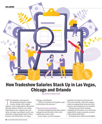 he tradeshow and experiential marketing industry merges creative design with complex logistics—and compensation reflects that intricate balance. Salaries vary widely depending on city, company size and union coverage, according to newly compiled data comparing the nation’s three premier convention hubs: Las Vegas, 42 Jan/Feb/Mar 2026 Exhibit City News