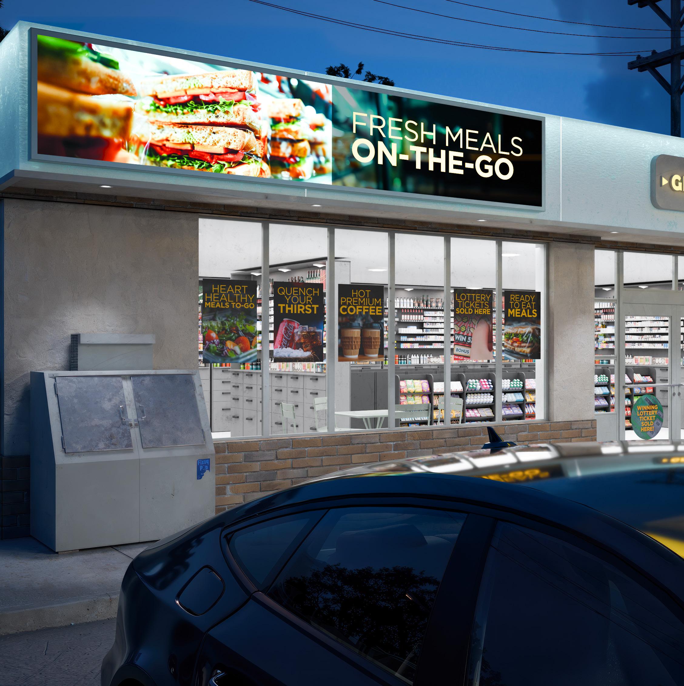 Stop traffic, literally! The placement opportunities are limitless at convenience stores - storefront header signage and large-format graphics for empty sidewalls are just a few!
