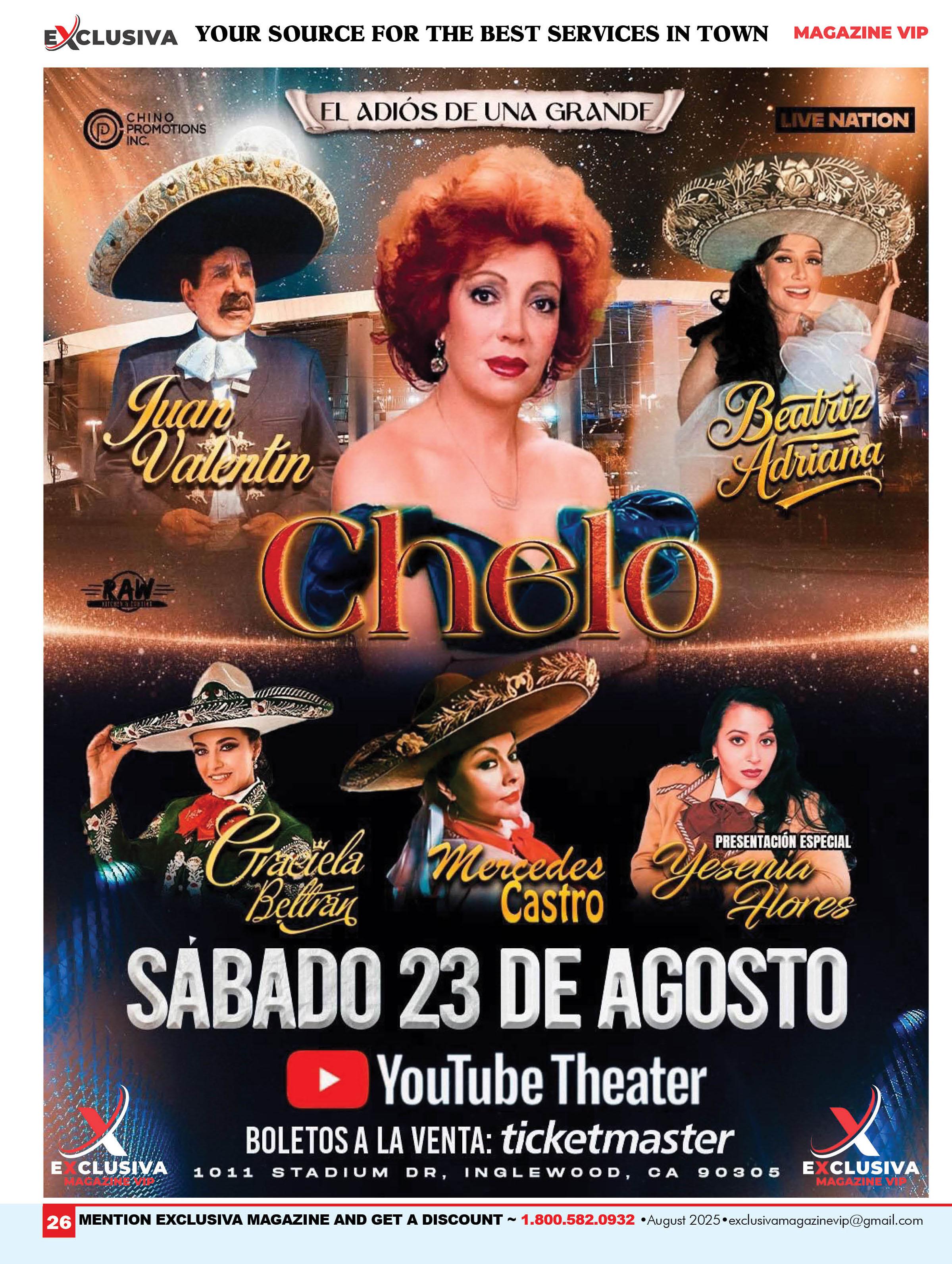 En esta edición celebramos el adios de los escenarios de la Estrella Chelo, La Grande de Guadalajar @soychelooficial. Con su gira de despedida, acompañada de de grandes leyendas de la musica mexicana @juan_valentinofficial @beatrizadrianaoficial @gracielabeltran @mercedescastro26 & en actuación especial @yeseniafloresmusica