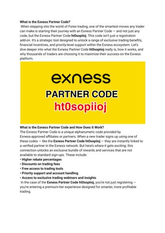 When stepping into the world of Forex trading, one of the smartest moves any trader can make is starting their journey with an Exness Partner Code and not just any code, but the Exness Partner Code ht0sopiioj. This code isn’t just a registration add-on. It’s a strategic tool designed to unlock a range of exclusive trading benefits, financial incentives, and priority-level support within the Exness ecosystem. Let’s dive deeper into what the Exness Partner Code ht0sopiioj really is, how it works, and why thousands of traders are choosing it to maximize their success on the Exness platform.
