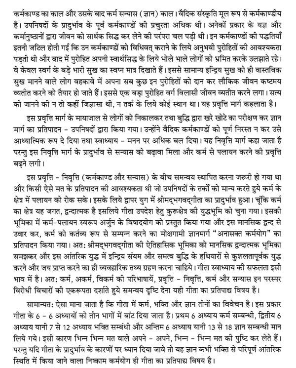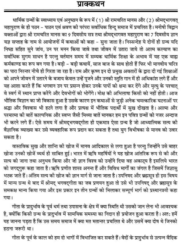 It is also necessary to know what was the situation in the field of religion and worship before the emergence of Gita. It is because in the emergence of a book, the solution of the current problem is the only purpose. so we It has to be known that what were the differences of opinion prevailing in the society at that time and what were the defects in it which were It was necessary to leave. At such times, Shrimad Bhagavad Gita is the only book that talks about spiritual truth. A scientist can explain it and give it a practical form and save the human from the horrors of the era could. The tradition of reading and listening to Mahapuran is prevalent in most Hindu society.