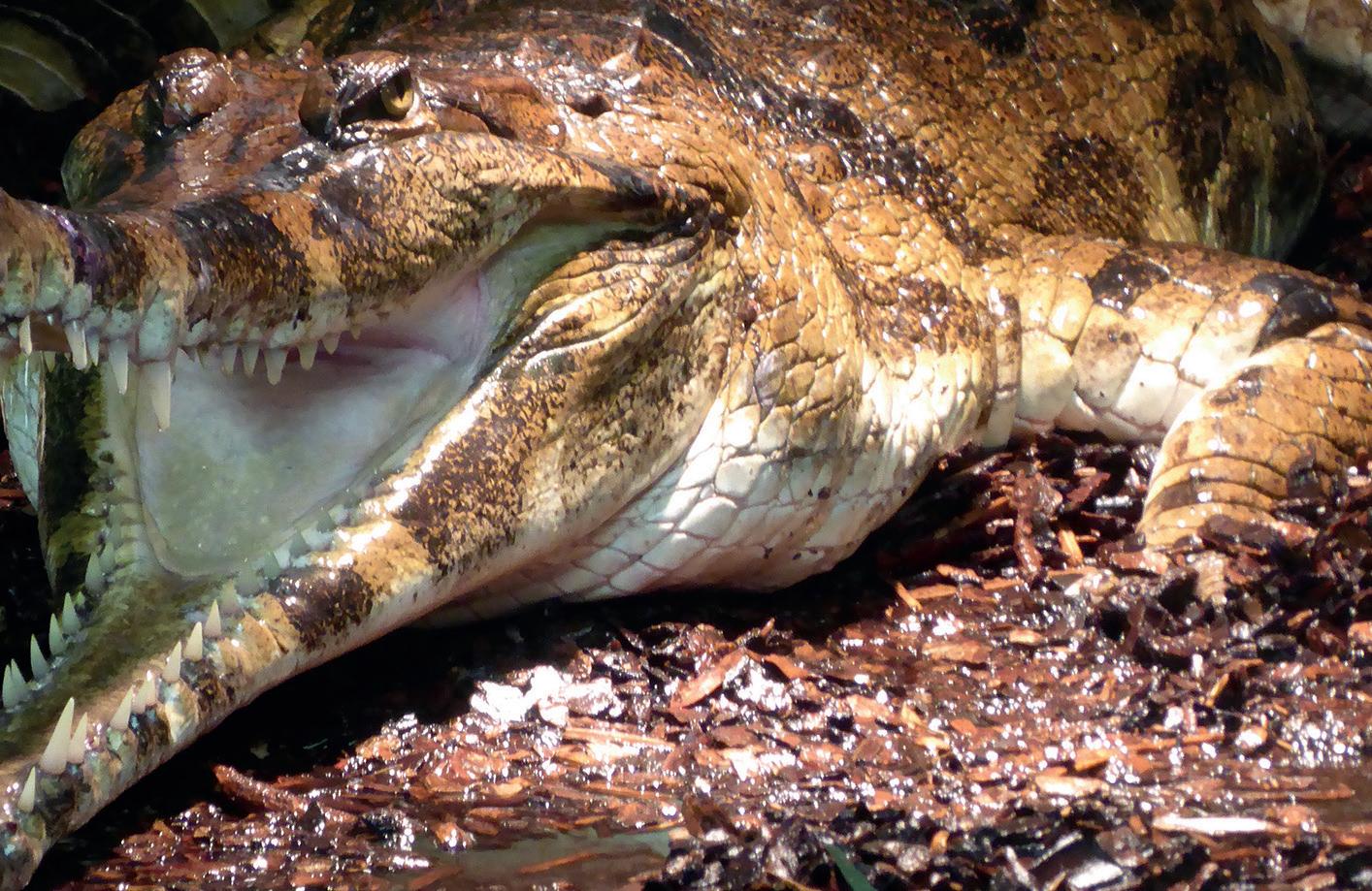 They don’t just eat fish, which is what a lot of people expect from those jaws. In the wild they eat a whole range of things, including macaque monkeys. They’re an awesome creature.