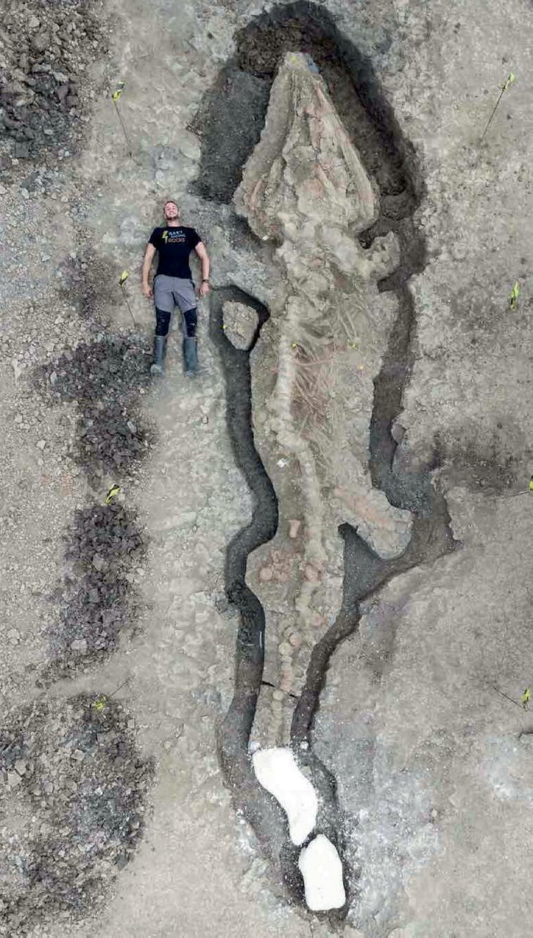 The fragile remains of the huge skeleton were carefully excavated in August and September 2021 by a team of expert palaeontologists assembled from around the UK, in partnership with Anglian Water, Rutland County Council and Leicestershire and Rutland Wildlife Trust. The excavation was led by world ichthyosaur expert Dr Dean Lomax and specialist palaeontological conservator Nigel Larkin, along with marine reptile specialist Dr Mark Evans, Dr Emma Nicholls from the Horniman Museum and volunteers with experience of excavating fossilised marine reptiles.