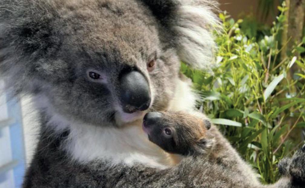 Have achieved a first European breeding of the Southern koala (Phascolarctos cinereus cinereus), the joey, born six months ago, has now emerged from the pouch of female “Violet”, the offspring was sired by male “Burke” - taking the group up to four.