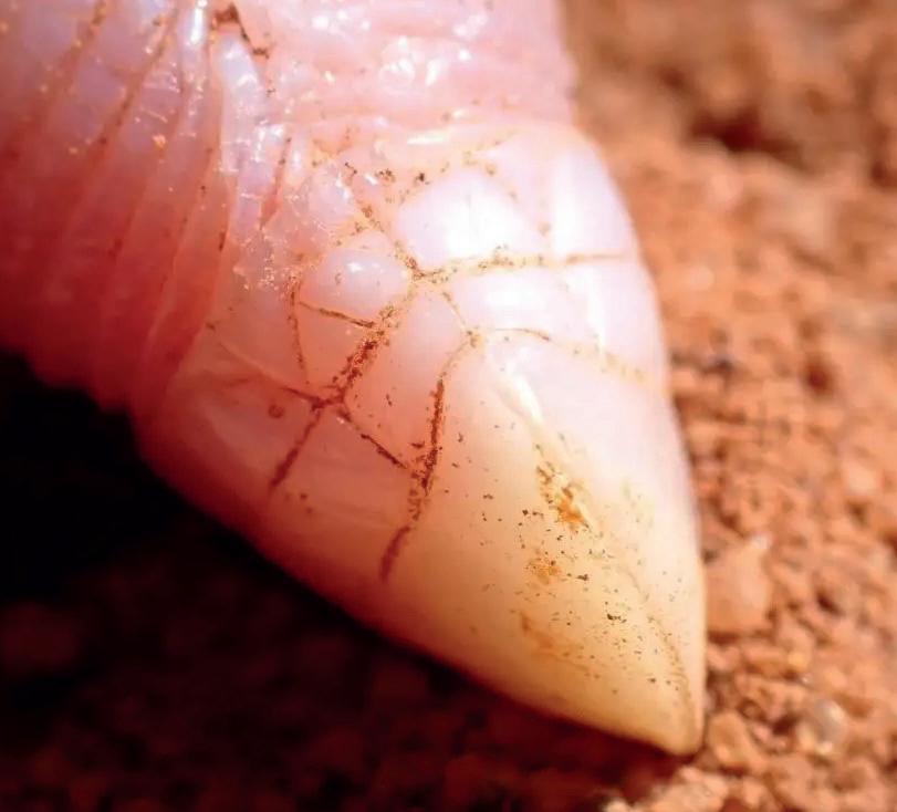 burrow through soil. The lack of sight allowed by their small eyes is countered by its heightened sense of hearing.