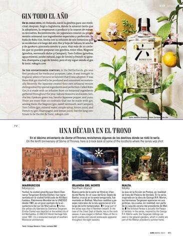 UNA DÉCADA EN EL TRONO En el décimo aniversario de Game of Thrones, revisitamos algunos de los destinos donde se rodó la serie. On the tenth anniversary of Game of Thrones, here is a look back at some of the locations where the series was shot.