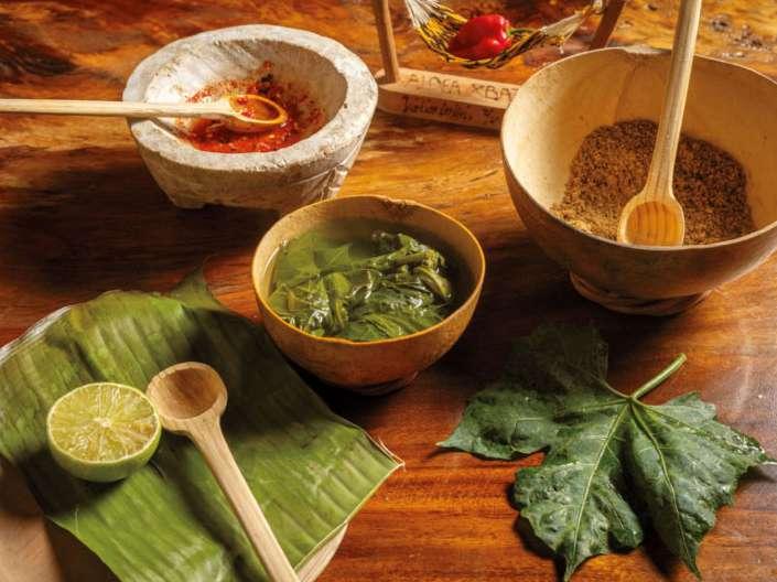 Podrás probar su sopa de hoja santa, la imperdible salsa sikil pak, el guisado pooc chuuc o el tamal xmak’ulan waaj.