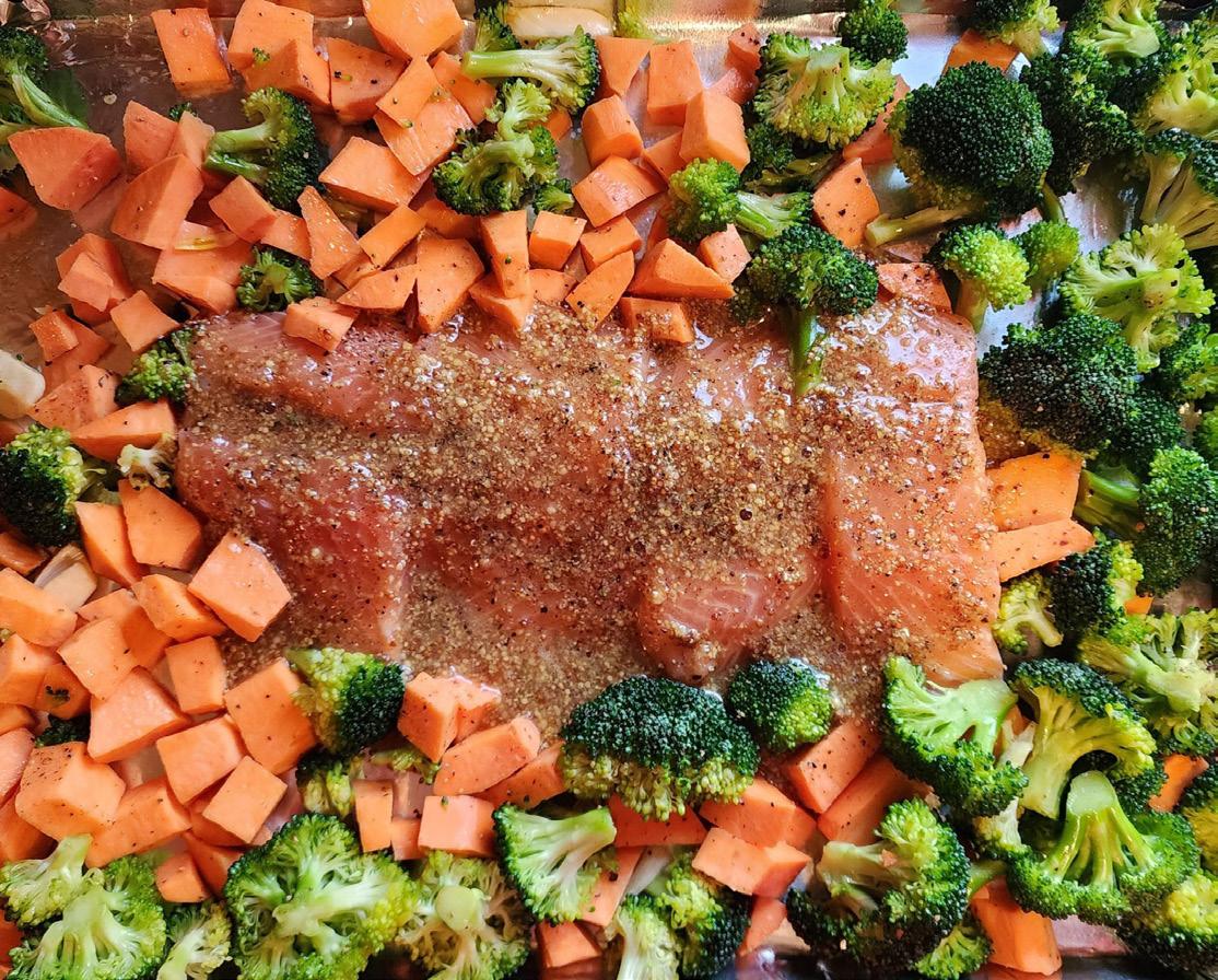 • 1/2 cup flaked wild-caught salmon (Chicken of the Sea brand works well, and saves time if you don’t want to cook fresh salmon)