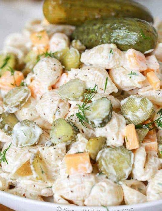 2. Combine veggies into a serving bowl with shredded cheese of choice. I usually use one bag (2 cups) of cheddar and one bag (2 cups) of colby jack, but really any cheese you want will work.