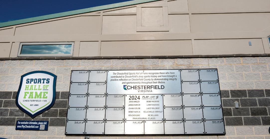 Established in 2024 and presented by Virginia Credit Union, the Chesterfield Sports Hall of Fame honors athletes, coaches, teams, and contributors whose achievements in Chesterfield County reflect integrity and excellence. The inaugural class of 10 local legends included gridiron stars James Farrior and Ken Oxendine, NASCAR driver Denny Hamlin, PGA greats Bobby and Lanny Wadkins, Olympic hurdler Kellie Wells-Brinkley, professional baseball player Johnny Grub, softball standout Lacey Waldrop, and sports pioneers Dave Amsler and Vic Williams. The class was inducted on September 12, 2024, with their names permanently displayed at River City Sportsplex.