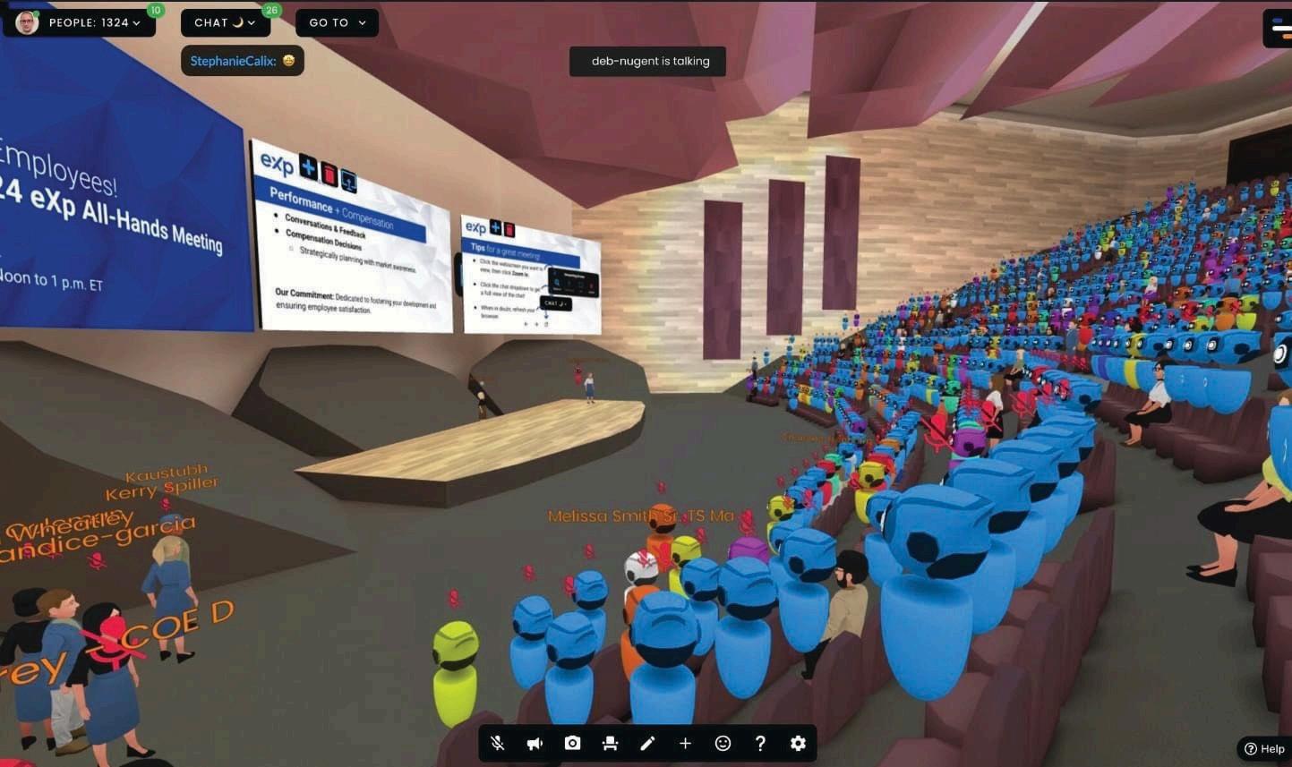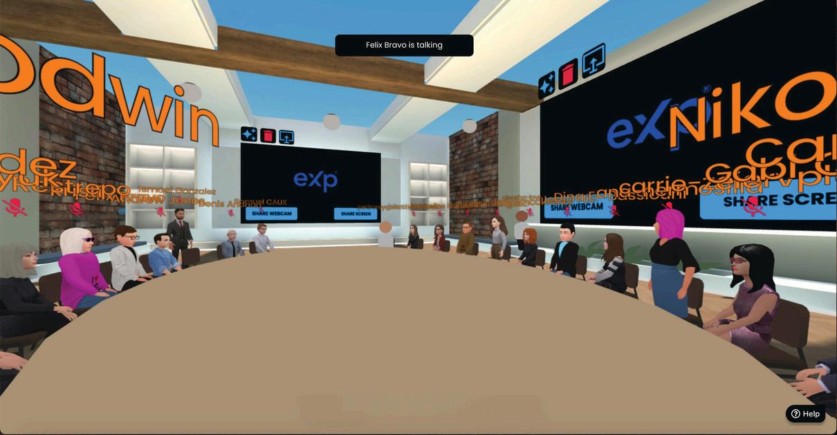 The eXp World Metaverse is a virtual environment that empowers businesses to connect, communicate, and collaborate seamlessly, no matter where they are located. It’s designed to support a range of industries, offering a digital space where clients can interact with agents, participate in training, attend events, and more.