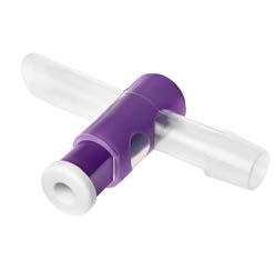 Das Ventil lässt sich leicht mit einer Hand bedienen. Die Ventile können an Bein- und Bettbeutel angeschlossen werden.