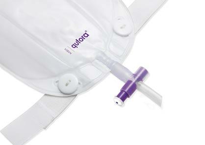 X Der Universalkonnektor erleichtert den Anschluss des Beutels an einen Katheter oder ein Urinalkondom.