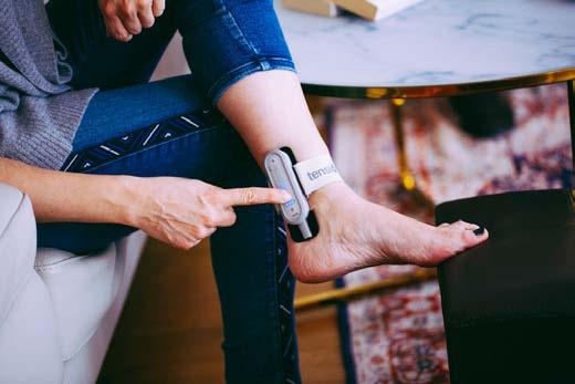 Tensi+ utilise la technique de neurostimulation électrique transcutanée(TENS)surlenerftibialpostérieur.