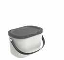 Modular und stapelbar; Modernes Design; Perfekt als Küchenhelfer für Ihre Arbeitsplatte; Geeignet für Bioabfall, Kaffeekapseln oder Geschirrspültabs; Praktische Öffnung von oben; Einfach zu tragen dank Trageriemen; 3.2 l zum Einhängen an der Schranktür; Einfach zu reinigen; Aus recycelten Kunststoffen hergestellt