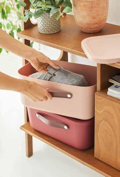 Hochwertiges Design; Perfekt durchdachtes System; Ideal zur Aufbewahrung von kleineren und grösseren Gegenständen; Bequeme und ästhetische Griffe; 25 l und 40 l: Tragekraft bis 40 kg; Abweichende Form der Grösse 27 l ideal für die Aufbewahrung von Papier bis Grösse C4 (A4 + Umschlag); Einfach zu reinigen