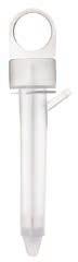 Ziehen Sie die Einführhilfe aus dem Katheter in den Auffangbeutel. Greifen Sie den Ring der Einführhilfe durch den Auffangbeutel auf Höhe der 500 bis 1000ml-Markierung.