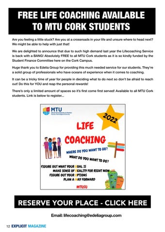 RESERVE YOUR PLACE - CLICK HERE Email: lifecoaching@edeliagroup.com 12 EXPLICIT MAGAZINE