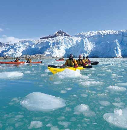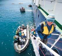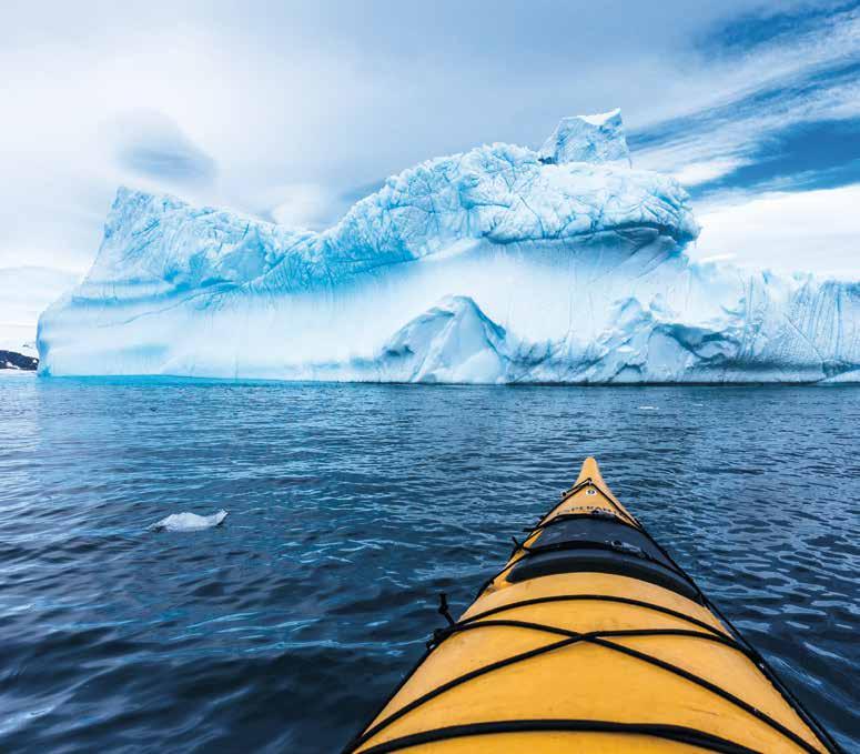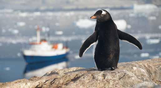 wandering albatross, skua and storm petrels are real highlights. Unlike the Arctic, there’s little in the way of vegetation to see, with mountains, glaciers and sheet ice that stretch for miles on the horizon. With much frostier temperatures, compared to the Arctic, there’s lots to learn about the brave voyagers who risked life and limb to first venture to the southernmost pole. Consider Sir Ernest Shackleton and his men, whose ship Endurance was crushed by ice and plummeted into the blue back in 1915 as they endeavoured to explore a new world (read more about that on pages 9–11). The sheer will to survive took the band of adventurers on an extraordinary journey back to civilisation and it’s one we regularly follow, a chance to connect with the past. In the present, whales migrate to Antarctica to hunt for krill in November and December; later in the season, you’ll become accustomed to spotting humpback flukes rising and disappearing beneath the surface of the cold water. Then there are the five seal species, rolling in the waves; the Antarctic fur seal, Weddell, crabeater, leopard and elephant. We stay on polar ships when we visit, remaining ever in the heart of Antarctica. Aboard, we have the chance to reflect and learn more from the experts that know this place best, logging our findings and contributing to the research of a region that still has so many mysteries to be unveiled.