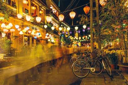 In Hoi An, the influences of Vietnam’s multicultural past are everywhere. On a walking tour with Hoan, we visited an old Japanese house, where we watched artists hand-stitching beautiful intricate scenes before heading to the ornate and fragrant Chinese Temple. Wandering the streets, there were colourful paper lanterns hanging between the buildings, intertwined with floral vines. By day, these were bright and eye-catching, by night, utterly spectacular.