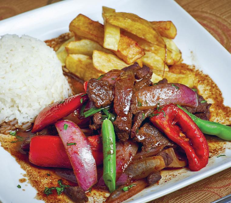 The food in Peru will take you by surprise Our gastronomy here is incredible – you’ll get to try some of the most unique and tasty dishes possible. My favorite must-try has to be Lomo Saltado, a very Peruvian food with a blend of Asian and Latin flavours. Tender strips of steak are stir-fried with onions, tomatoes, and French fries – it’s a hearty meal for any occasion (find the recipe on page 23). My restaurant tip?