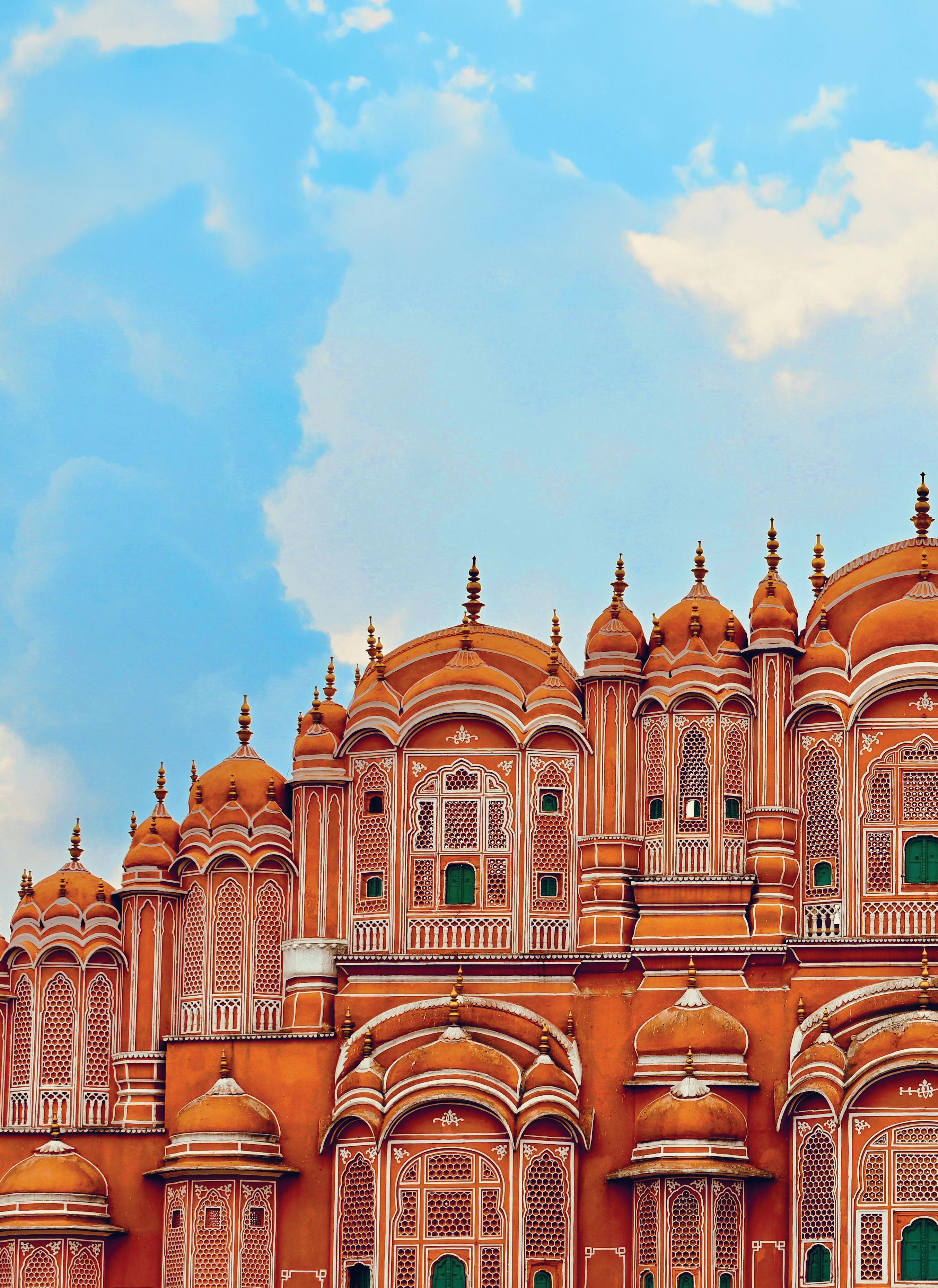 Coming into Jaipur it’s a typical Indian city, bustling with activity and brimming with a cacophony of sounds from tuk-tuks navigating traffic to Chai Wallahs selling their fragrant tea. Then, passing through the old city’s walls, the scene transforms into a sea of dusky pink buildings stretching all around, with the incredible facade of the Palace of the Winds as its decorative centrepiece.